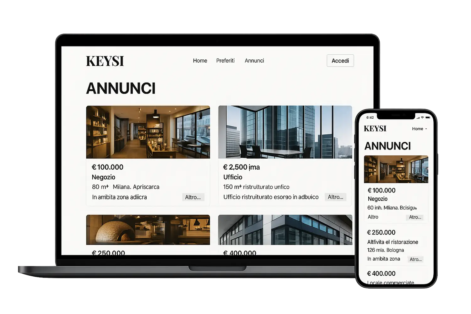 KeySi è pensato per privati, imprenditori, investitori, agenzie e professionisti del settore immobiliare non residenziale. Se operi nel mondo corporate, è la piattaforma giusta per te.